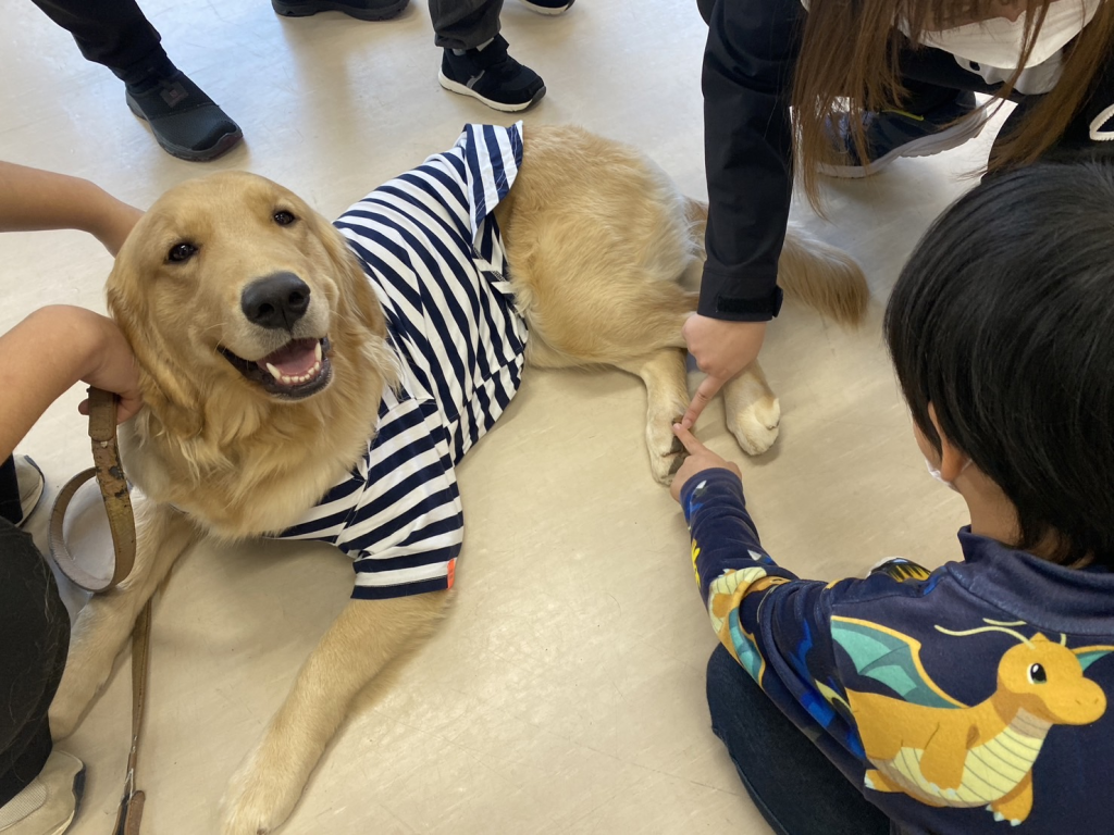 もう一つは、子どもたちを対象とした活動です。児童施設の子どもたちを学校に招き、犬とふれあうイベントを実施しています。